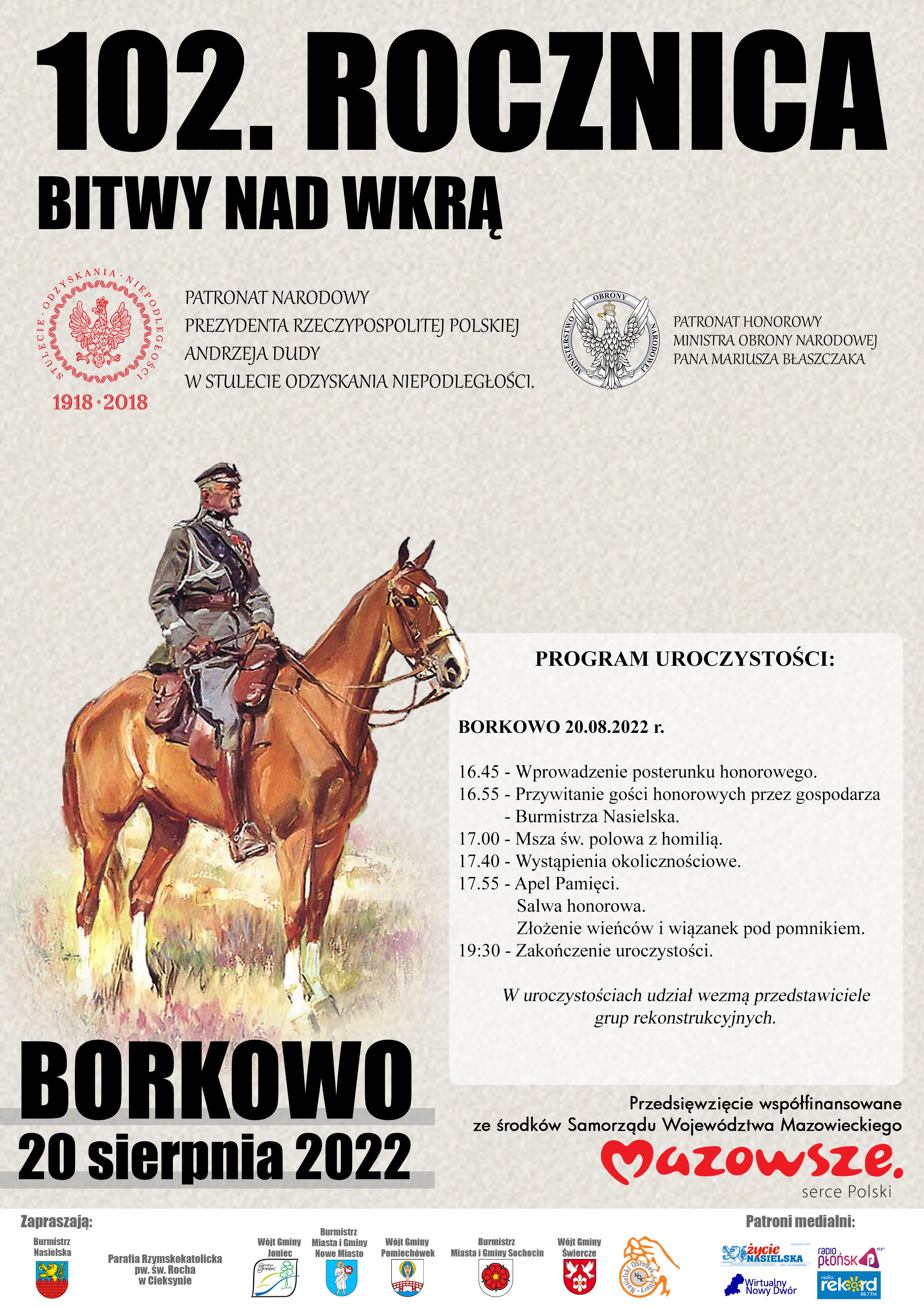 20 sierpnia 2022 roku, ponownie w pierwszą sobotę po Święcie Wojska Polskiego, będziemy obchodzić rocznicę jednej z najważniejszych bitew w historii Europy – Bitwy nad Wkrą, będącej jedną z kluczowych potyczek wojny polsko-bolszewickiej z 1920 r.